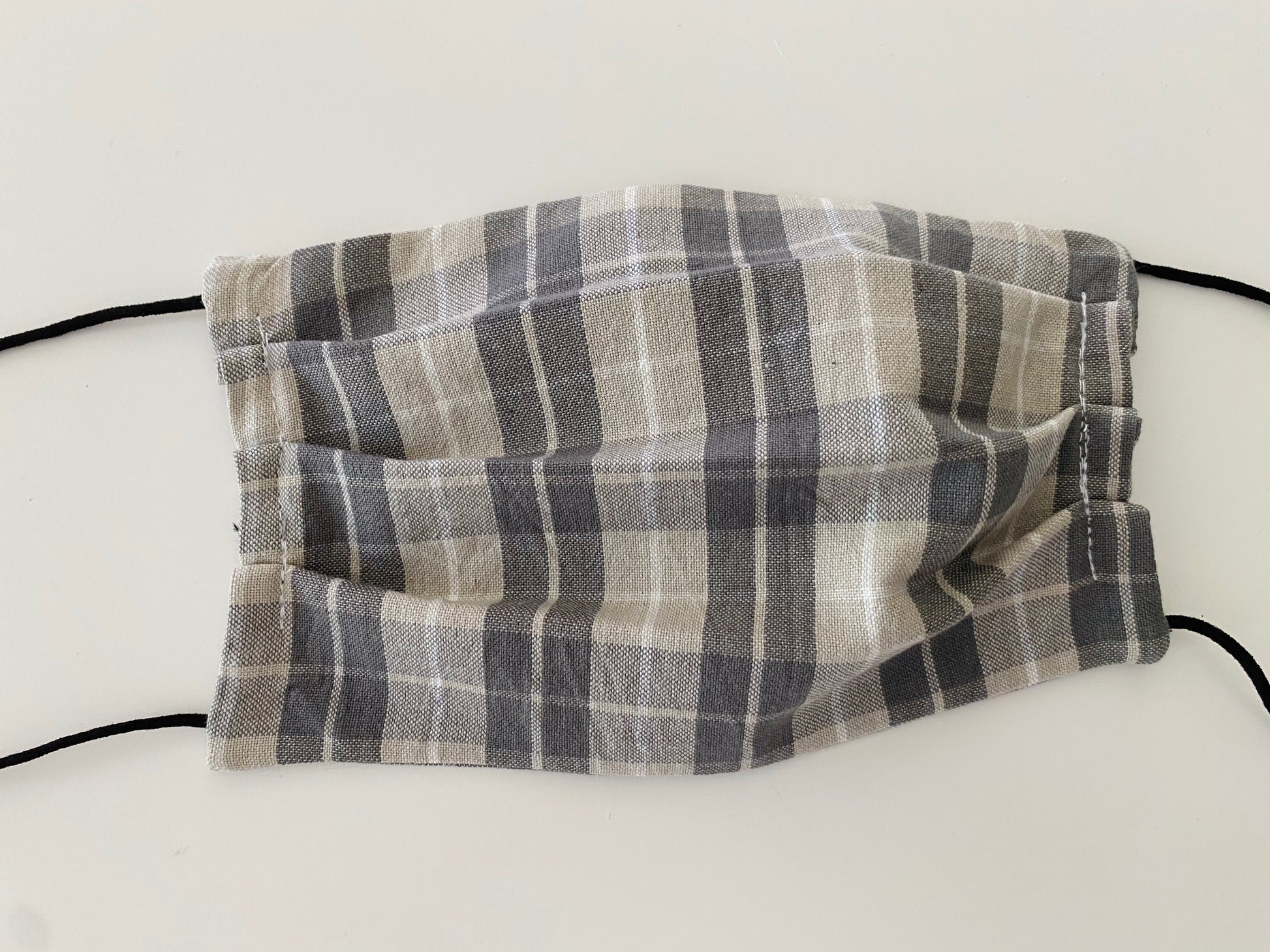 Grey checks face coverings made with 100% cotton fabric and soft cord for around the ears which is adjustable and comes with instructions.